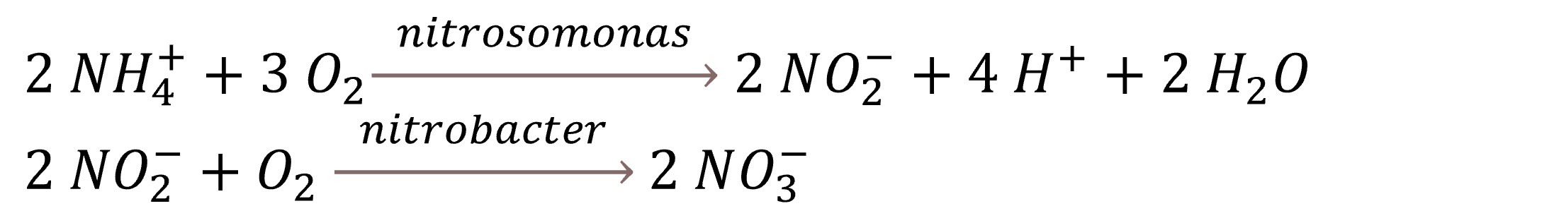 Nitrification, a biological oxidation process that converts ammonia to nitrite (nitritation) and then nitrite to nitrate (nitratation), is the most critical process for determining wastewater treatment efficiency. The metabolisms of nitrifying bacteria, such as Nitrosomonas and Nitrobacter, are largely responsible for nitrification.