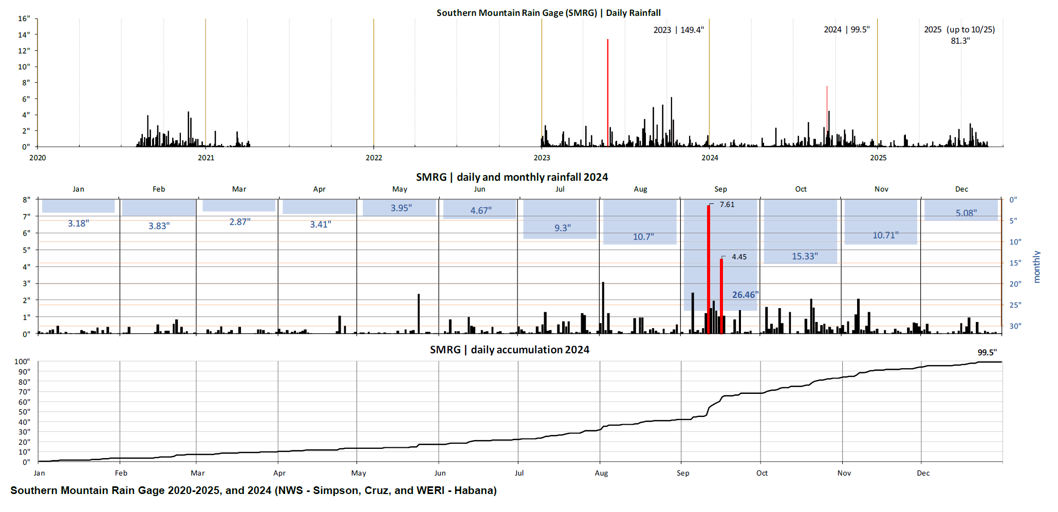 Continued… ENSO ONI and Rainfall History (1970-2025) daily, annual, and seasonal (…1997-10/25/2025)